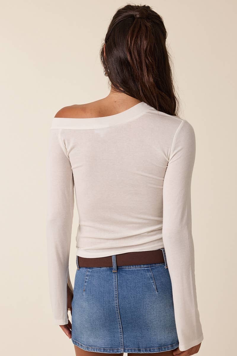 One-Shoulder Long Sleeve Plain Knit Top