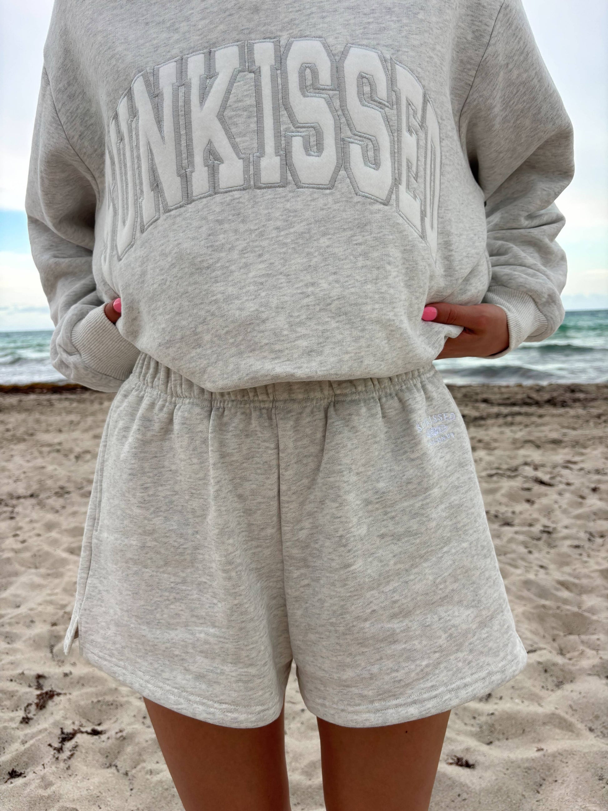 Pearl Grey Embroidered Sweat Shorts